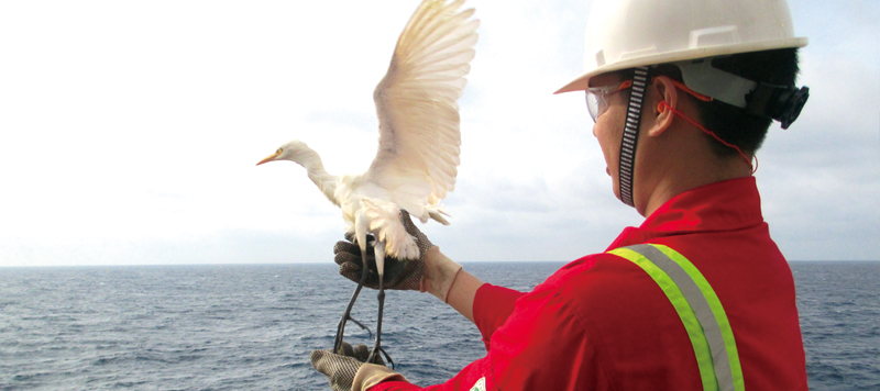 中海油服坚持以人为本、社会和谐、环境友好,全面协调可持续发展的理念,始终把优秀的安全环保业绩作为追求目标,将绿色低碳融入到生产运营的各个环节,坚持行业较高标准规范员工行为,追求企业与人、社会、自然的和谐。